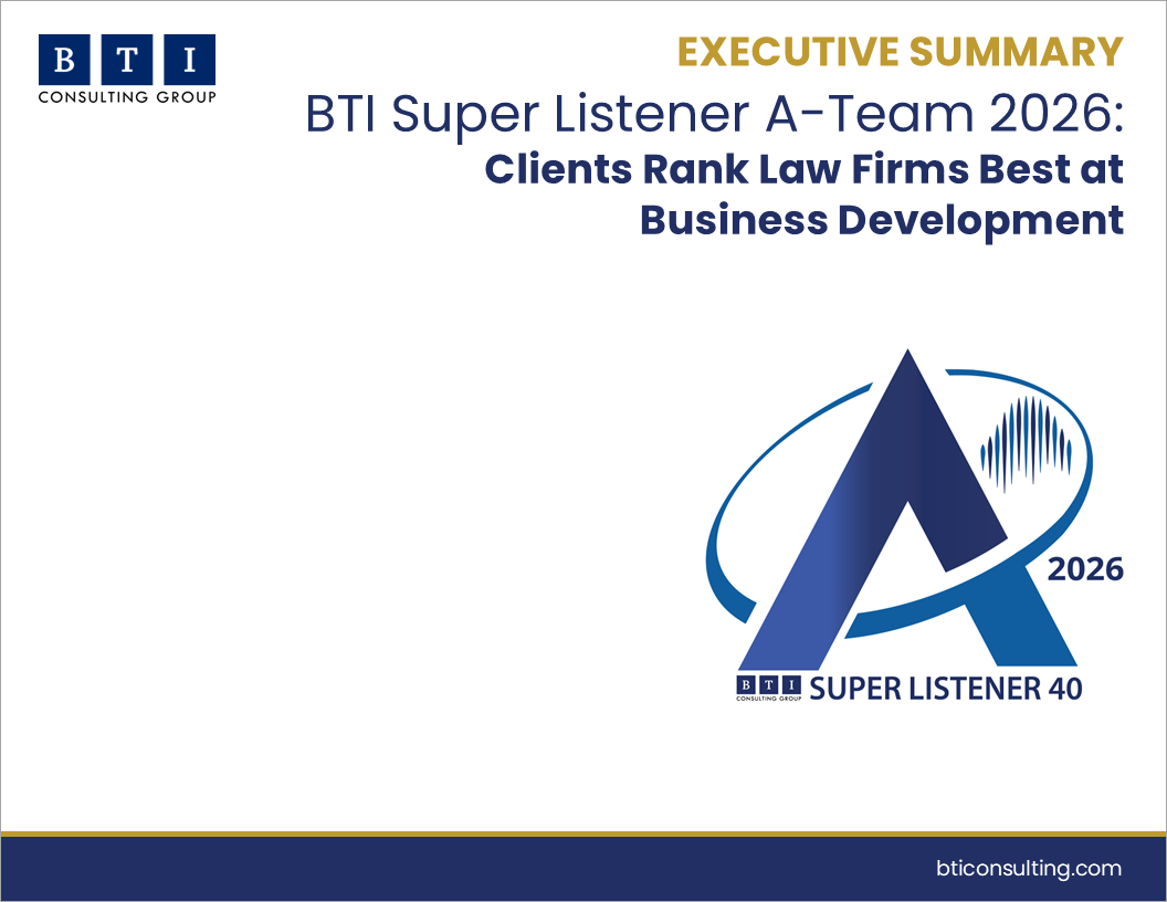 BTI Super Listener A-Team 2026: Clients Rank Law Firms Best at Business Development details specific actions your attorneys can take to deliver on the business development driving the biggest and most strategic wins.
